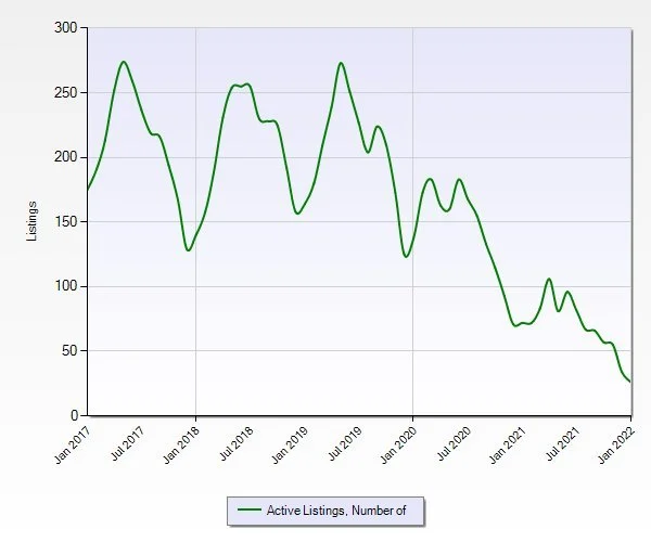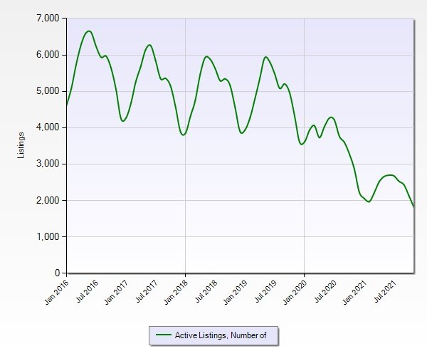 Number of active listings in December DOWN 72% since 2019